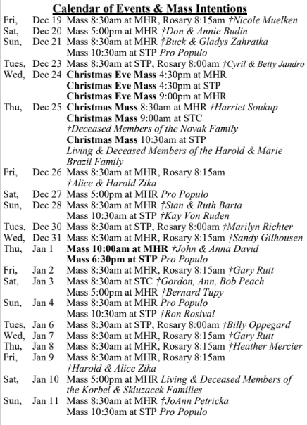 Tues: 9:00 - 9:30 am - St. Patrick (Shieldsville)